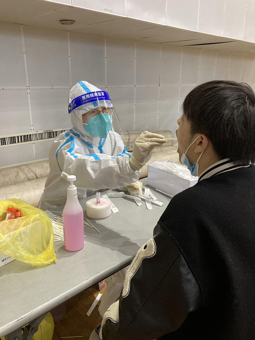 从3月13日凌晨起,第一支部党员迅速到岗,他们统筹安排师生刚需后勤保障人员、物资,第一时间排查近600名的后勤服务人员流调工作,为全校近2万师生的服务做好保障。卫生所党员在支部党员、志愿者的协助下,克服种种困难,不断优化检测流程,确保学校每一次的核酸检测的顺利行进。质量监控部党员每天走遍校园的角角落落,从环境卫生、台账记录、日常管理,疫情防控,不放过任何一个细节。公寓服务人员切实做好学生服务管理工作,落实楼宇消毒规定,做好学生体温监测,服务好隔离观察区学生……