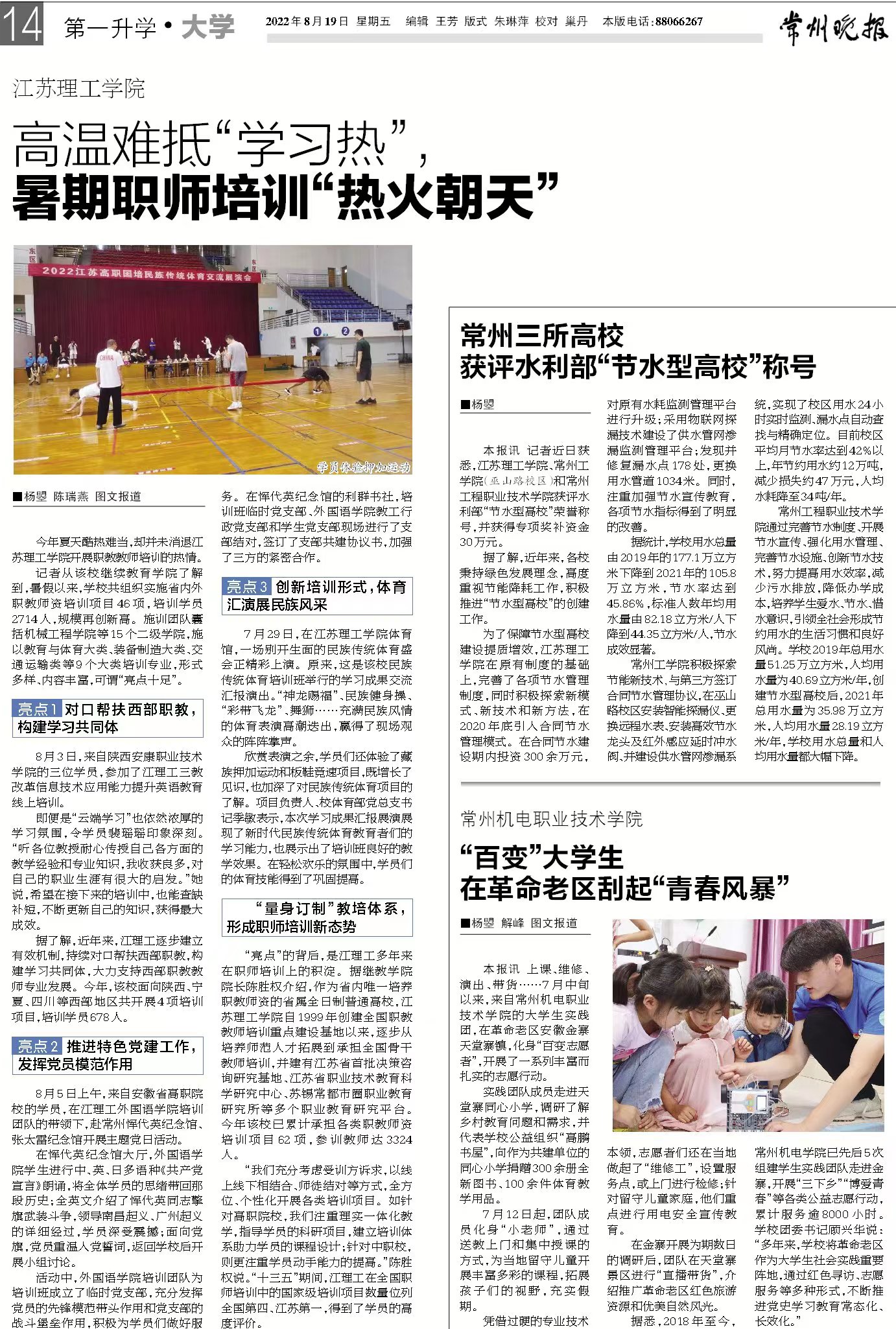 常州晚报:常州三所高校获评水利部“节水型高校”称号