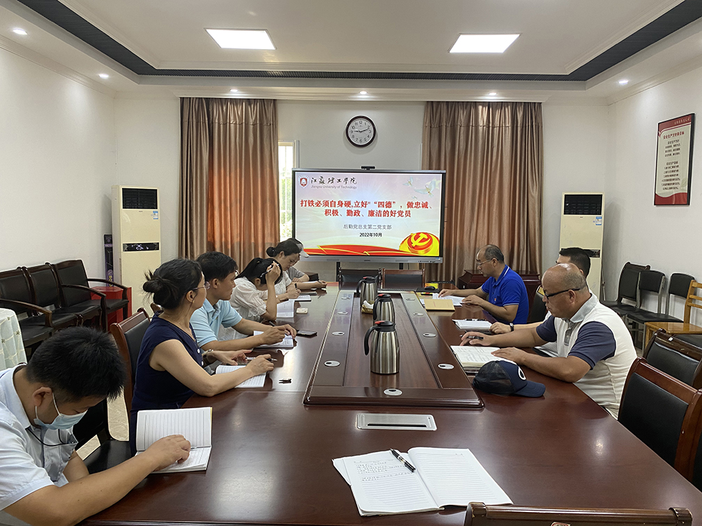 10月6日,后勤党总支第二党支部组织开展支部书记上党课活动,支部书记方其富带领支部全体党员集中学习了《打铁必须自身硬,“立好”“四德”,做忠诚、积极、勤政、廉洁的好党员》,二支部全体党员参加。
