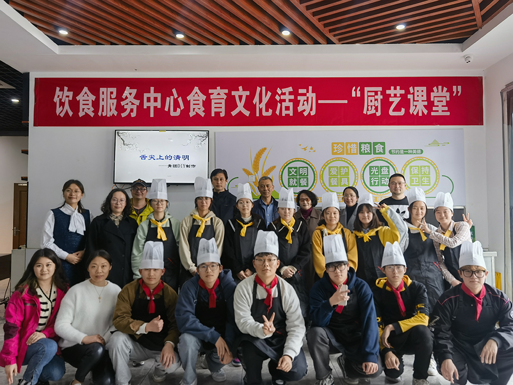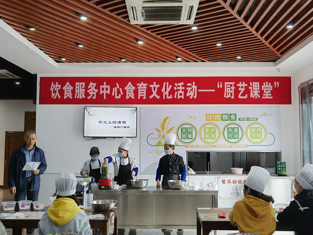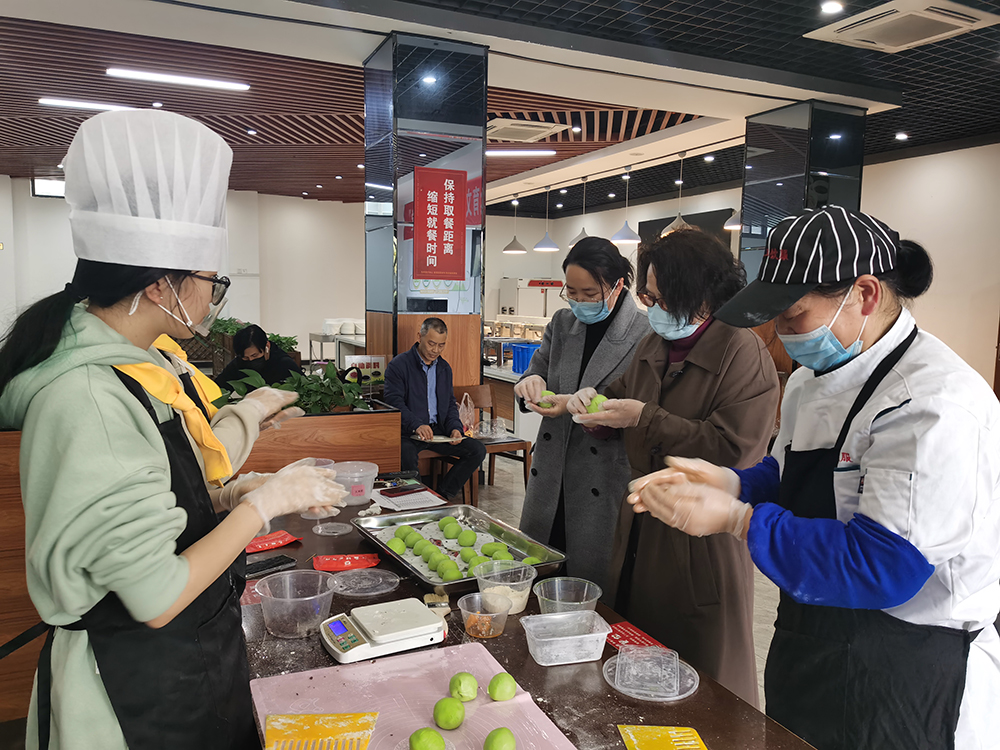 清明将至,为探究青团的时令之美,帮助师生感受传统文化的魅力。4月4日下午,由饮食服务中心组织的第一期“厨艺课堂”之青团DIY制作食育文化活动在教工餐厅开课,质量监控与培训科、饮食服务中心管理人员以及部分学生代表参加了活动,公司副总经理马祥甸出席了活动。