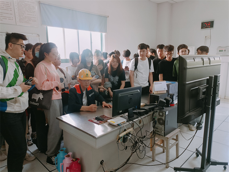 参观现场,变电站值班员吴发对学生们进行了安全教育,并就变电站基本情况、高压设备运行情况、智能控制系统等方面进行了详细的讲解;随后,带领学生们参观了控制中心、110KVGIS室、1#主变、2#主变、10KV高压室及电容器室等场所。面对同学们的疑惑,耐心地解答,整个参观过程井然有序。