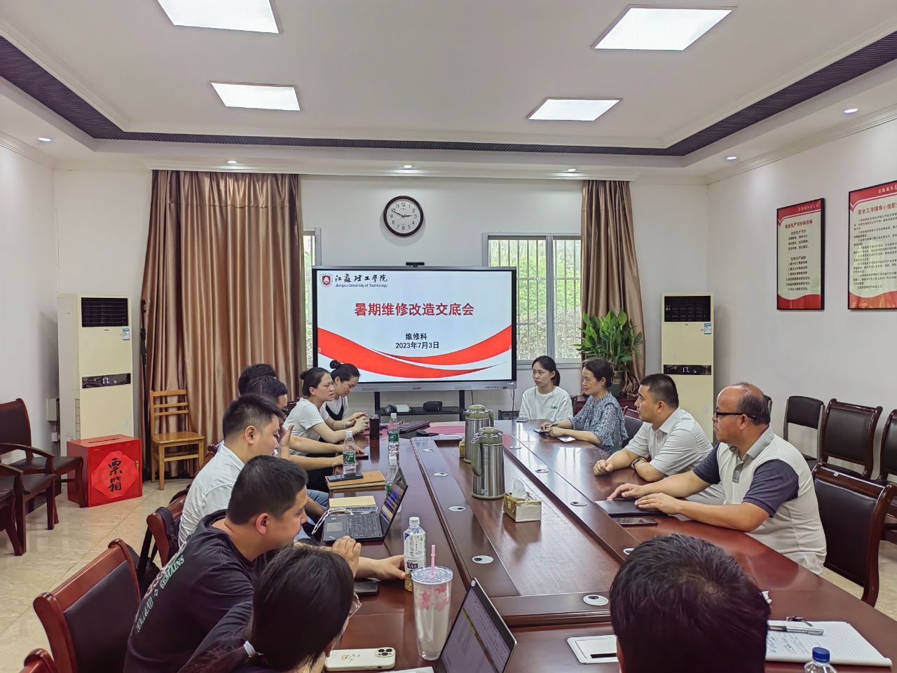 为确保我校暑期维修改造项目顺利实施,7月3日下午,维修科召开暑期维修改造交底会。后勤保障处处长蒋益锋,维修科、施工单位相关负责人参加了会议。