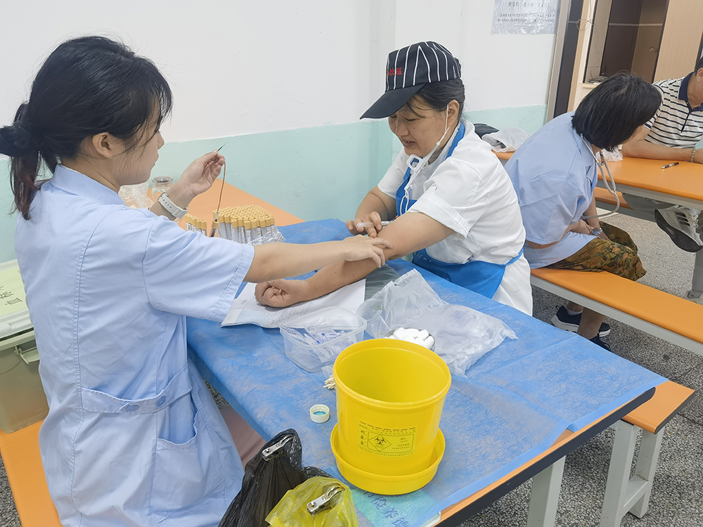 9月3日,常州市鼎武医院专业人员早早的到达了北苑食堂,为校内学生食堂及协作经营单位的150余名餐饮从业人员分别进行内科、皮肤、DR胸片、肠检、ALT、甲/戊肝抗体等项目的检查;同时,通过体检可以达到“早诊断、早预防、早治疗”,让员工以健康的身体投入到我校餐饮服务工作中。