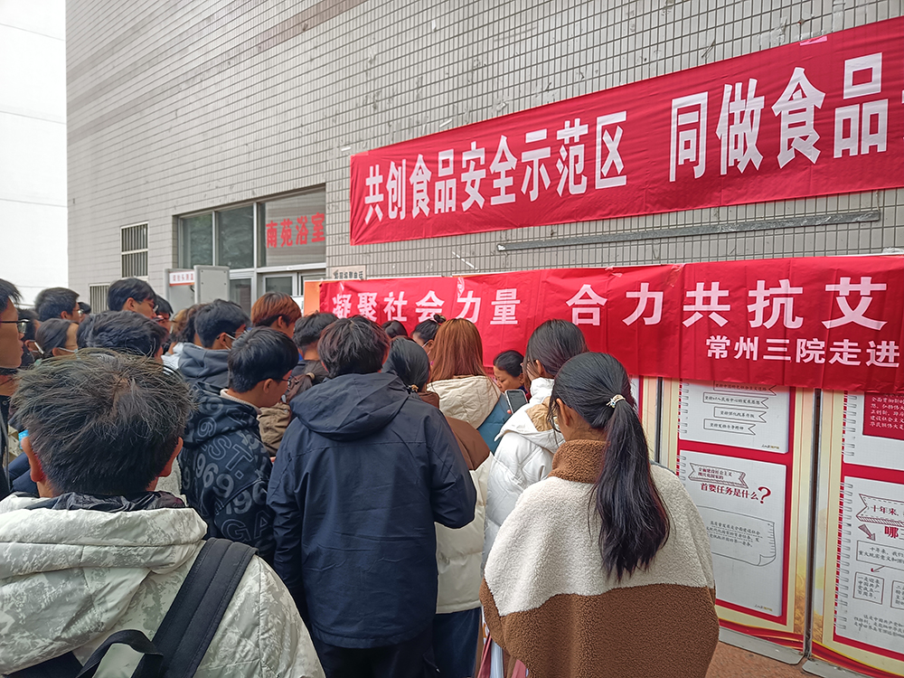 11月29日、30日中午,卫生所联合文旅学院、常州市第三人民医院、西林社区医院分别在西苑食堂、北苑食堂、南苑食堂做艾滋病防控宣传活动。活动现场内容丰富,除了展板展示,还设置了小礼品领取、艾滋病检测包及宣传资料发放等环节,吸引了大批学生踊跃参与。通过现场宣传增加了师生对艾滋病的认识和关注,让他们懂得如何远离艾滋病毒和珍爱生命,知道怎样去对待艾滋病患者,消除对艾滋病病人和感染者的歧视,积极动员身边的人参与到艾滋病预防、控制和关爱艾滋病人的活动中去。 (图/文 卫生所 张莉;审核/王济伟)