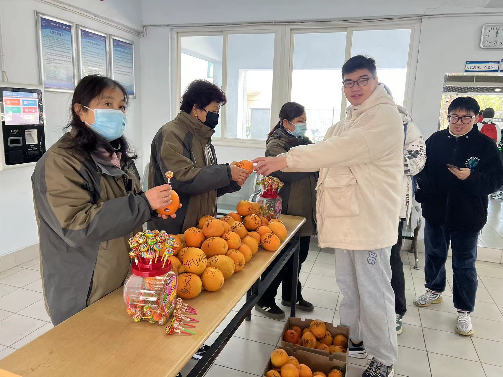 中心提前为考研学生准备了寓意满满的礼物,橙子寓意“心想事成,成功上岸”,棒棒糖寓意“相信自己,你是最棒棒的”,热牛奶寓意“温暖你的心”。活动现场,收到礼物的同学们纷纷表达了对宿管阿姨的感谢,表示在最后的冲刺阶段一定会拿出最好的状态,不负期望,坚持到底,努力考出好成绩!