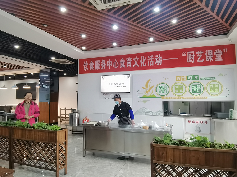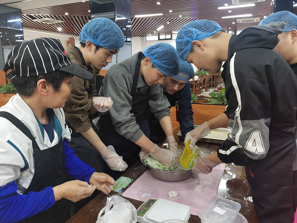 为深入推进大学生劳动实践教育,营造良好的校园饮食文化和劳动育人氛围,4月3日下午,后勤保障处饮食服务中心于北苑教工餐厅举办食育文化系列活动——“厨艺课堂”,教授学生制作清明节江南地区的传统特色小吃——青团。此次活动由后勤保障处、后勤服务总公司(合署)组织,饮食服务中心副经理王莲琴主持,质量监控与培训科科长丁静、饮食服务中心经理吕璟、副经理束瑜、汽车与交通工程学院劳动教育实践带队教师万超以及学生共二十余人参与了活动。