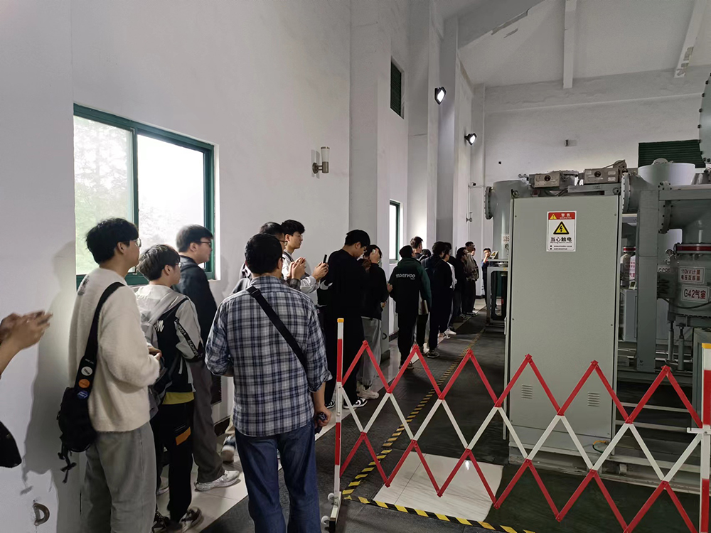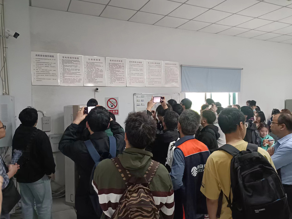 现场观摩中,工作人员耐心解答,整个参观过程井然有序。面对同学们的疑惑,后勤保障处能源管理中心变电站值班员吴发从变电站基本情况、高压设备运行情况、智能控制系统等方面向学生们作了详细的讲解;能源管理中心张灿经理对同学们强调了用电安全的重要性;随后,学生们参观了控制中心、110KVGIS室、1#主变、2#主变、10KV高压室及电容器室等场所。