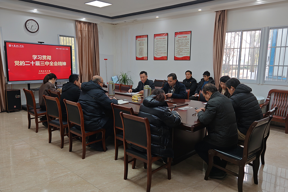12月18日下午,后勤处党支部组织全体党员开展党的二十届三中全会精神学习交流研讨,会议由党支部书记王龙主持。