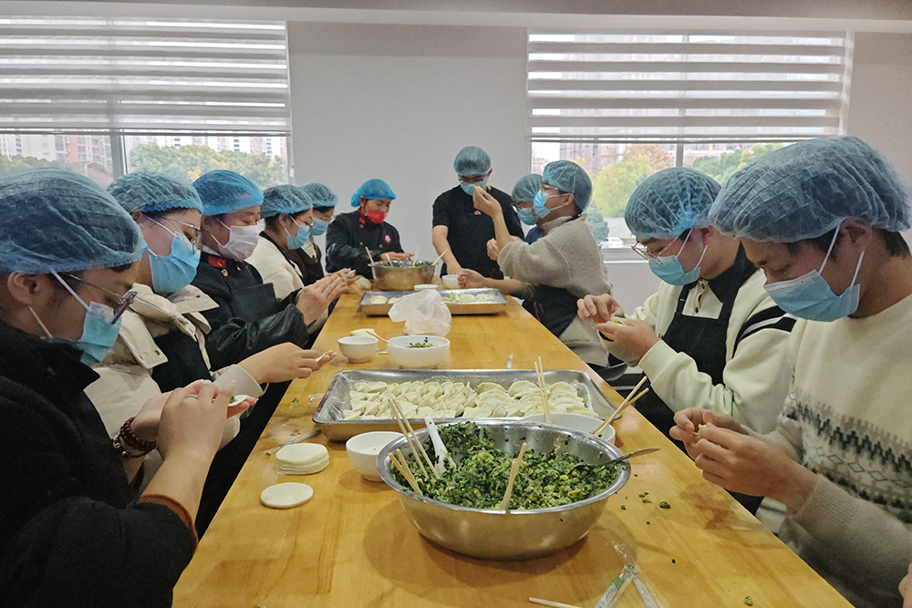 12月19日,饮食服务中心在教工餐厅开展“食育文化之二十四节气 情暖冬至”厨艺课堂,后勤保障处质量监控与培训科科长丁静、饮食服务中心管理人员以及学生共同参与了本次活动。