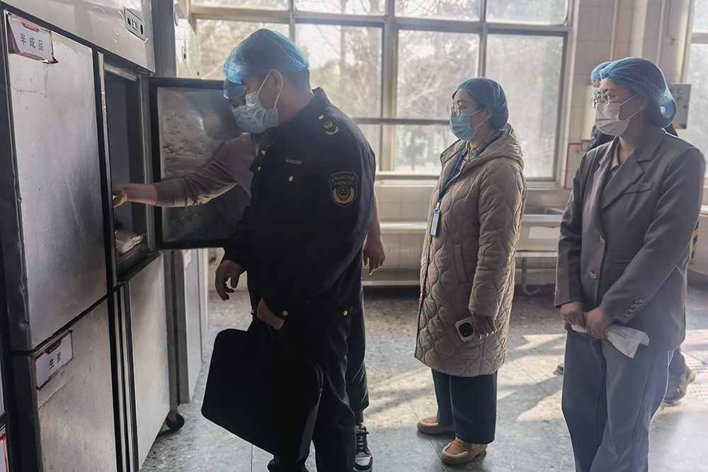 检查组现场询问了我校在食品采购、储存、加工、留样等环节的管理措施,以及食品安全责任制度的落实情况。随后深入食堂操作间、备餐间、消毒间等区域,重点检查了食品原料的采购来源、储存条件、加工流程、餐具消毒、从业人员健康证等方面的工作。检查组对我校食品安全管理工作给予了充分肯定,认为我校在食品安全制度建设、日常管理及风险防控等方面措施到位,管理规范。同时,检查组也针对检查中发现的一些细节问题提出了改进建议,要求学校进一步完善硬件设施和台帐记录,确保食品安全工作不留死角。