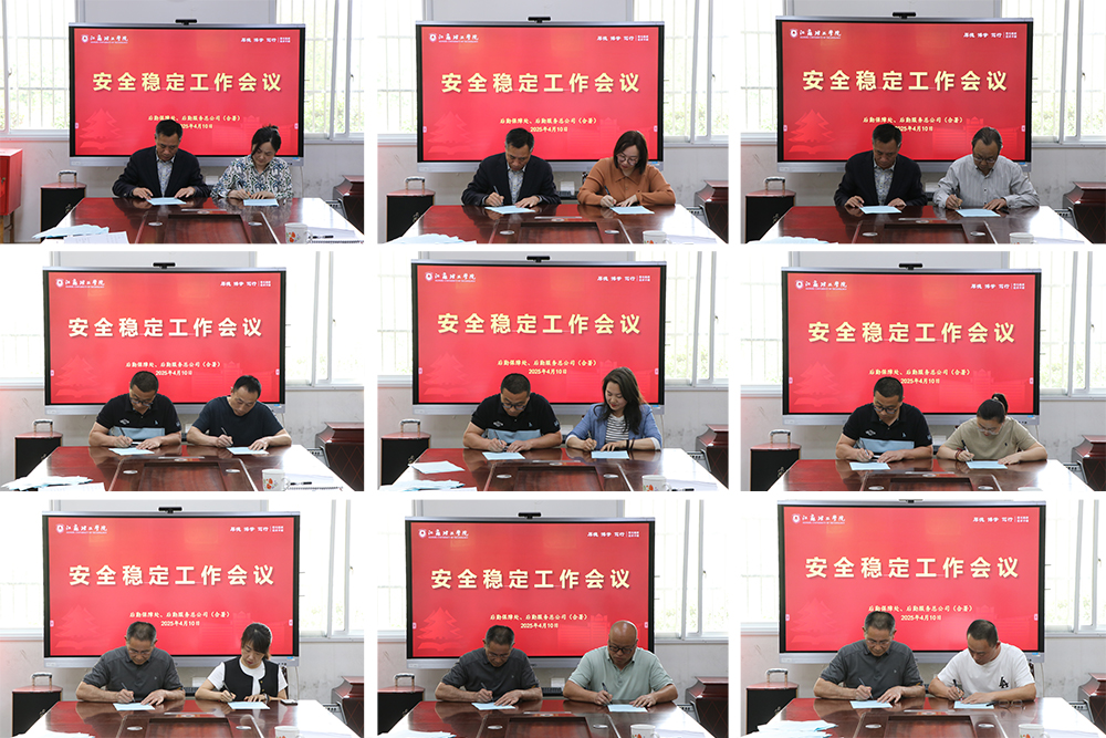 会上,王龙传达了学校2025年度校园安全稳定工作会议的相关要求。后勤保障处副处长、后勤服务总公司副总经理房子磊领学《江苏理工学院安全稳定责任制实施办法》。随后,王龙与各分管领导、各分管领导与各科室(中心)负责人逐级签订安全生产与管理责任书。