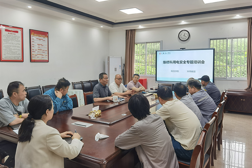 为积极响应学校安全工作要求,切实提升电工专业技能与安全意识,有效防范用电安全事故,5月23日,维修科开展了用电安全专项培训,特邀电信学院宋伟教授主讲,后勤服务总公司副总经理颜国方、维修科管理人员及电工参加了培训。