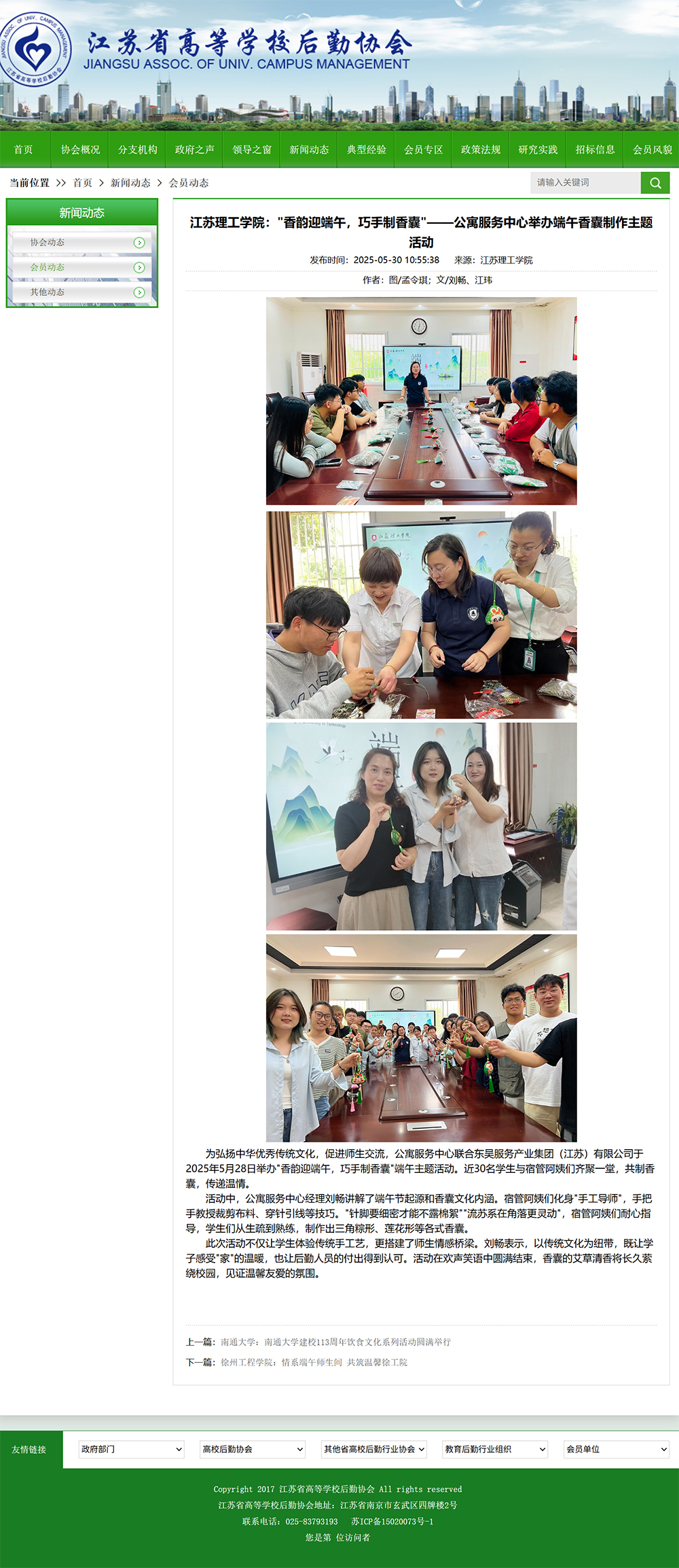 江苏省高等学校后勤协会:江苏理工学院:香韵迎端午,巧手制香囊——公寓服务中心举办端午香囊制作主题活动