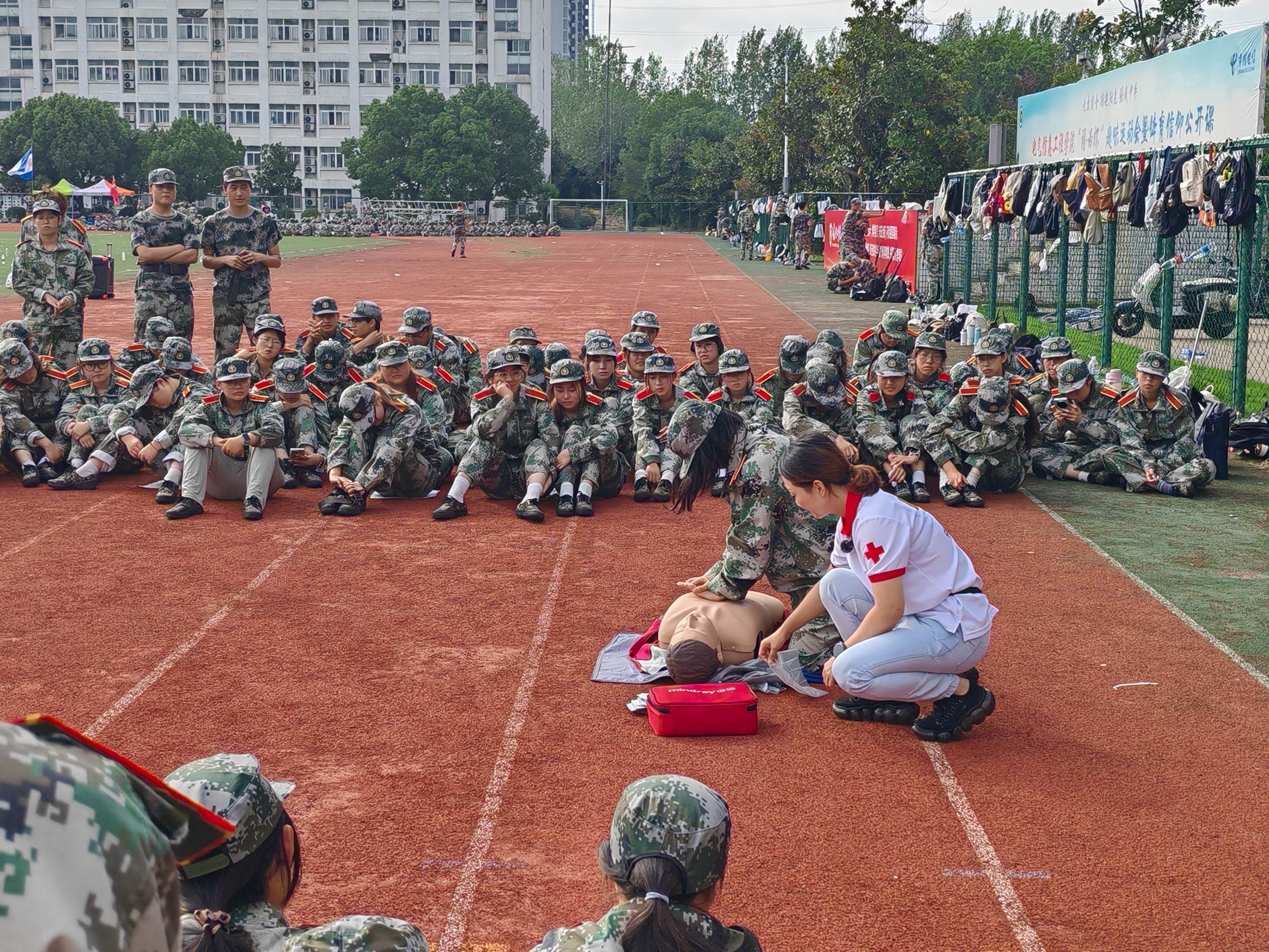 为切实提升学生应对突发事件的自救互救能力,全面普及应急救护知识,进一步保障学生身体健康与生命安全,10 月 17 日上午,我校联合常州市红十字会,在 2025 级新生军训现场,专门开展了应急救护知识普及培训,共有 5000 余名新生参与。
