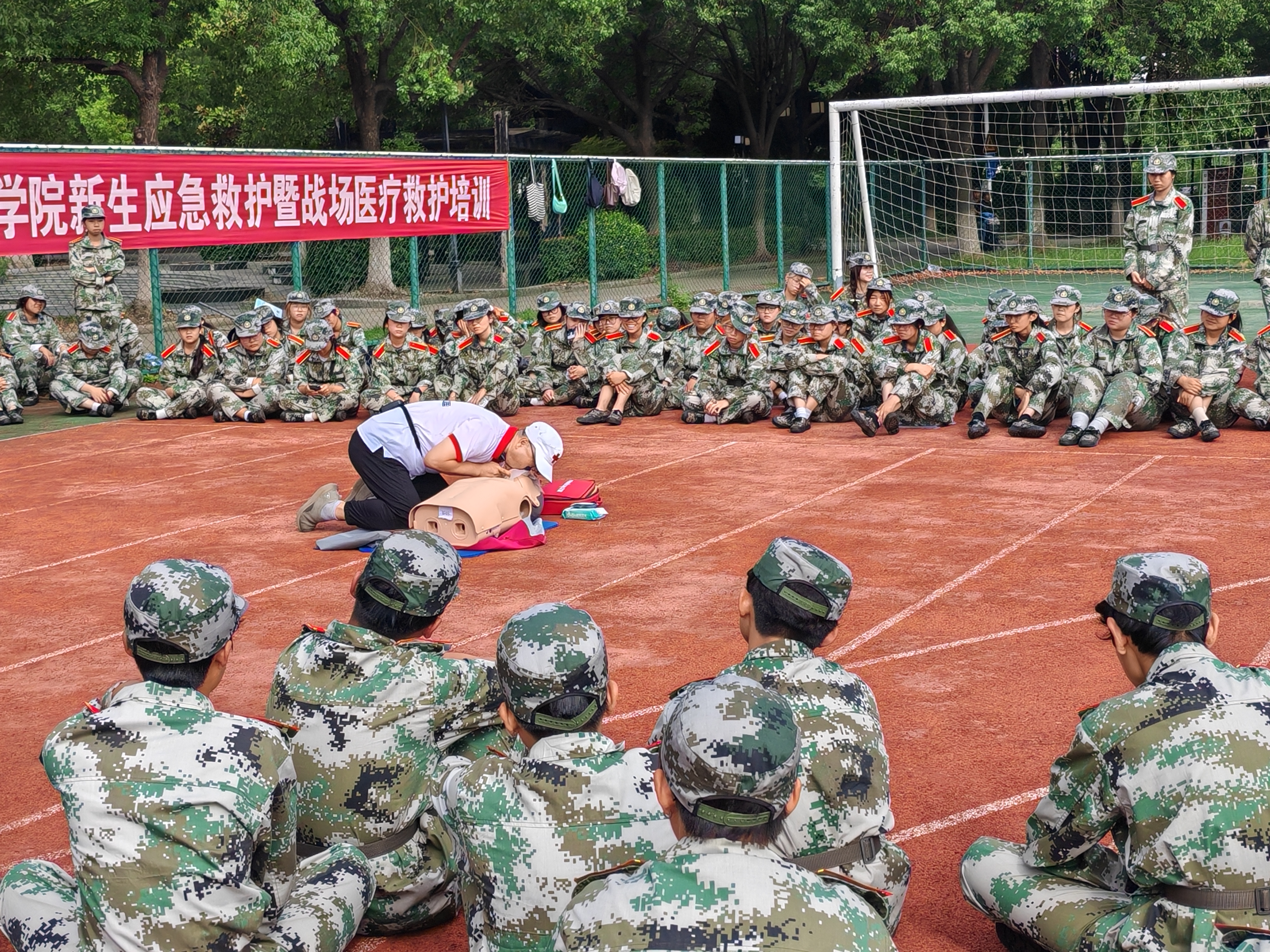 本次培训特邀常州市红十字会的 23 名专业培训师现场授课。培训师围绕心肺复苏、AED(除颤仪)使用、气道异物梗阻急救、常见急症应急处理技巧,以及贴合军训场景的战场医疗救护知识展开讲解,还通过模拟人演示心肺复苏标准操作与注意事项、AED 使用方法,并亲身示范海姆立克法,让新生深刻意识到 “时间就是生命”,充分认识到急救知识的重要性。(图文/卫生所 张莉;审核/房子磊;编辑/王莲琴)