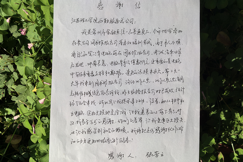 图书馆报告厅作为我校重要活动场地,会务人员不仅高质量完成本校大型会议、学术讲座等服务保障,还不断承接外来培训、交流活动。工作中,多次拾获手机、笔记本、钱包等物品,均第一时间登记保管并积极联系失主,悉数归还。此次失主特意撰写感谢信,赞扬了后勤员工传承美德、践行善行为单位树立了良好的形象。 (图文/场馆会务中心 单春雨;审核/颜国方;编辑/王思奇)