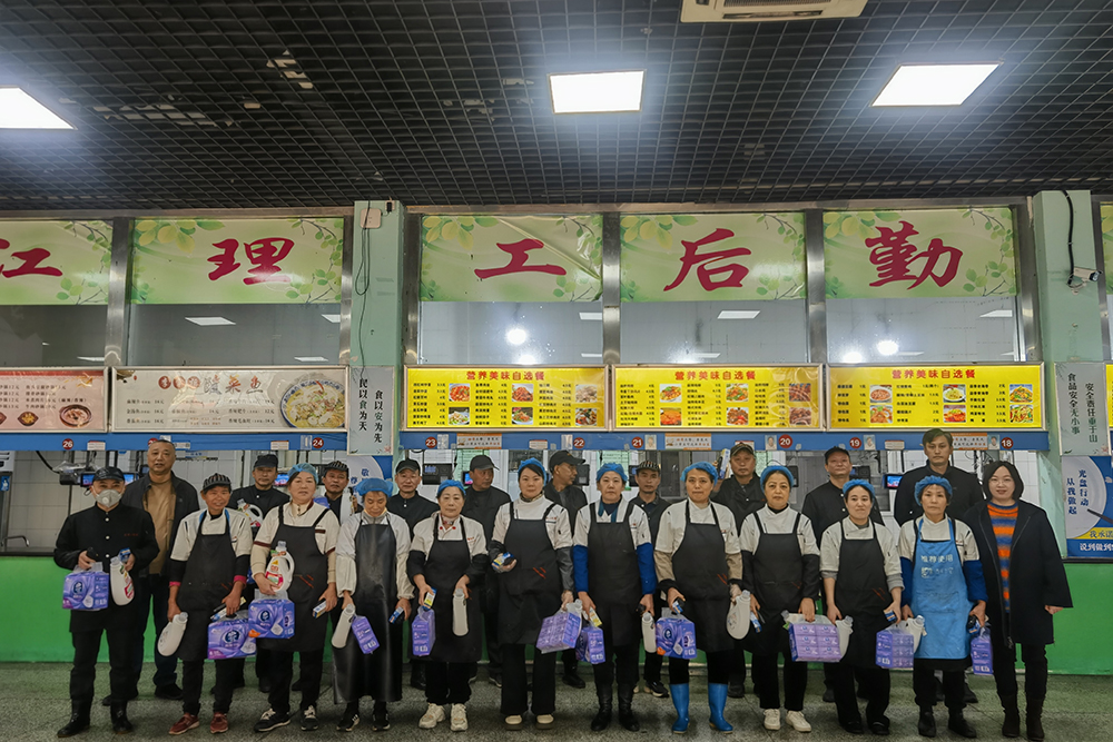 12月22日上午,饮食服务中心经理吕璟带队前往各食堂,为坚守一线的员工送上冬日慰问与暖心关怀。